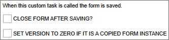 When a Form instance has been copied, the copied instance retains the same version number of the original. In order to reset the version number of the copied, unsubmitted Form instance, the property checkbox labeled Set version to Zero if it is a copied form instance will, when checked, reset the version number of the copied Form instance to 0. This will ensure that the Form instance is not treated as a submitted instance. This property was added in v2025.09.25.