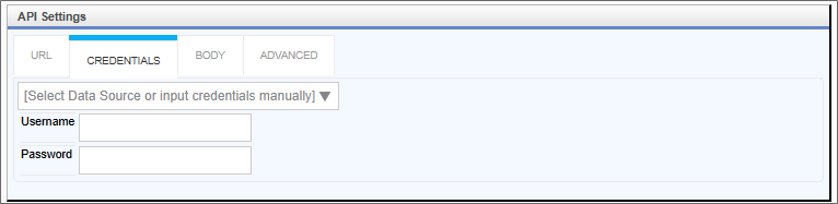 | Use SOAP instead of REST | This property, when checked, indicates the API call will be made to a SOAP web service. When checked, the Credentials tab will be hidden. Checking this field will alter the property values that appear in this tab, to reflect the appropriate REST or SOAP properties. | |