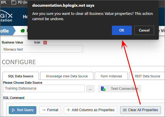 Clicking this button will remove all of the Business Value properties that have been configured, after you confirm this option via a dialog box.