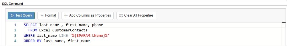 Clicking this button will run the SQL query in the SQL Command property against the database to confirm that the query works properly.