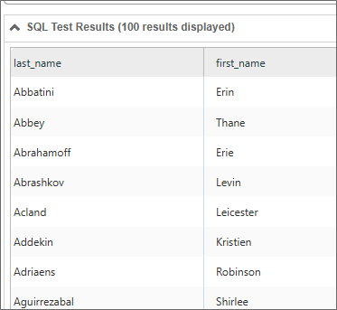 For Process Director v5.44.703 and higher, the Test Query button will display up to 100 rows of sample data from a SQL Datasource in the Business Value definition. The data will be displayed in a SQL Test Results section on the page. This section is hidden until the Test Query button is clicked.