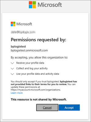 This page provides you with basic information about the data that Microsoft requires to set up your MFA authentication. To continue the authentication setup, click the Accept button.