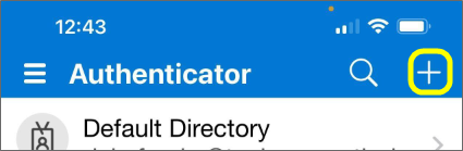 At this point, you’ll need to open the Microsoft Authenticator app on your mobile device. In the top right corner of the screen, tap the Plus (+) icon to create a new account.