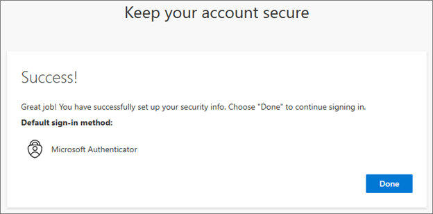 Your authentication account setup is now complete. Click the Done button to end the account creation wizard. You should now me able to access document attachments via M365.