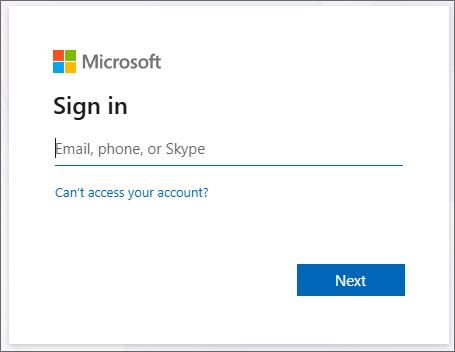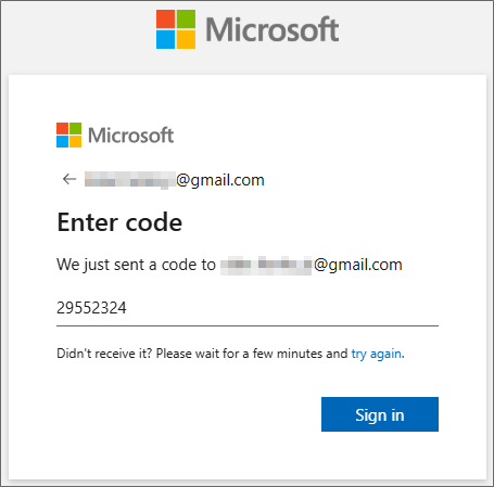 Once you’ve entered the OTP you received as the account verification code, click the Sign In button. Clicking the button will open the initial page from Microsoft.