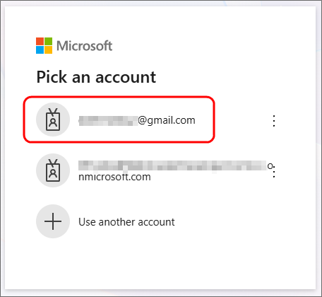 Because you may have more than one account registered with Microsoft, you’ll need to select the account you used to register with Process Director by clicking on it in the list of accounts. In this example, we’ll select the Gmail account we used to set up authentication.
